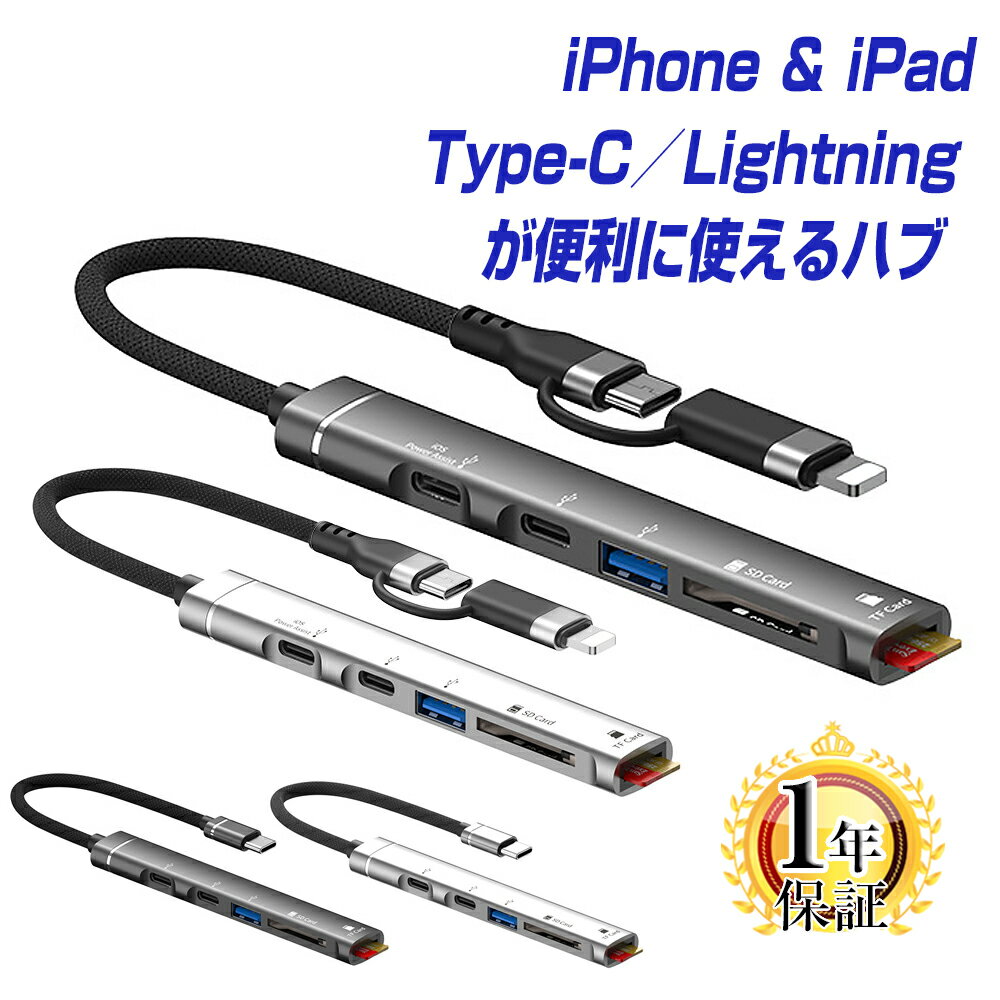 iPhone iPad 専用 Lightning タイプC 両用 USBハブ SDカードリーダー 4in1 アプリ不要 1年保証 簡易使用説明書付き カメラリーダー microSD iPhone/iPad Mini Air Pro対応 アイフォン アイパッド ライトニング USBメモリ 接続 写真 移動 にも使える |pre