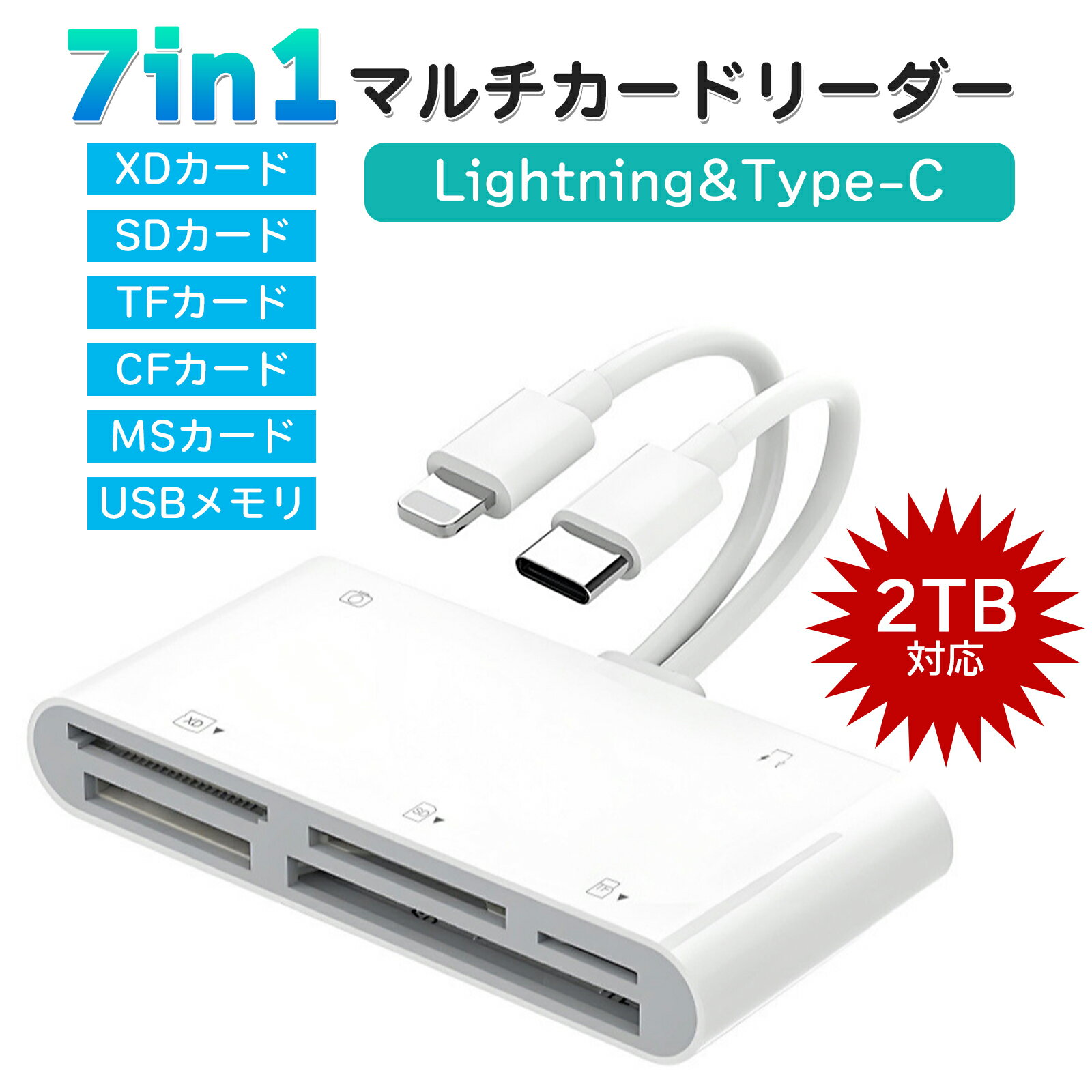 \2025新型・iPhone17対応/7in1 SD カードリーダー usb type-c microSD USBメモリー SD XD TF CF MS カード リーダースマホ Type-c アップル 双方向 ハブ 変換アダプタ Android iPhone macbook ipad SDカードリーダー iPhone カメラリーダー 写真/動画/PDF転送 2TB対応