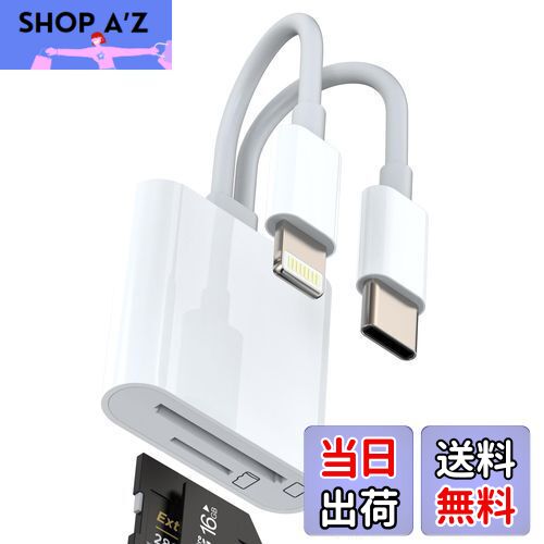 「即納」2in1 SDカードリーダーiPhone/iPadに適用Lightning SD/MicroSDカード iOS最新対応 設定不要 写真/ビデオ/動画/Word/Excle/PPT/PDF双方向高速データ転送 変換アダプタ iPad/iPhone 14/14 Pro/14 Pro Max/13/13 Pro/12/X等に対応 OTG機能