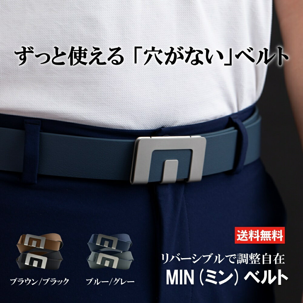 MINベルト メンズ カジュアル ベルト バックル ゴルフウェア 男性用 ゴルフ ゴルフ用 【穴なしベルトの最終形態】高級感と使いやすさを兼ね備えたリバーシブルモデル