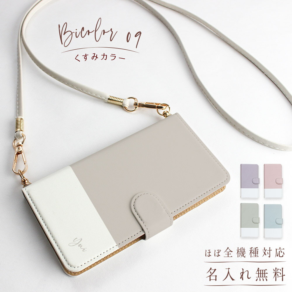 バイカラー09 くすみカラー スマホショルダー 大人可愛い ツートン 名入れ イニシャル スマホケース 手帳型 ほぼ 全機種対応 iPhone16Pro 15Pro 14Pro 13Pro 13mini 12Pro 12mini SE第3世代 11 Galaxy Xperia AQUOS sense Pixel Redmi Xiaomi Mi oppo 誕生日