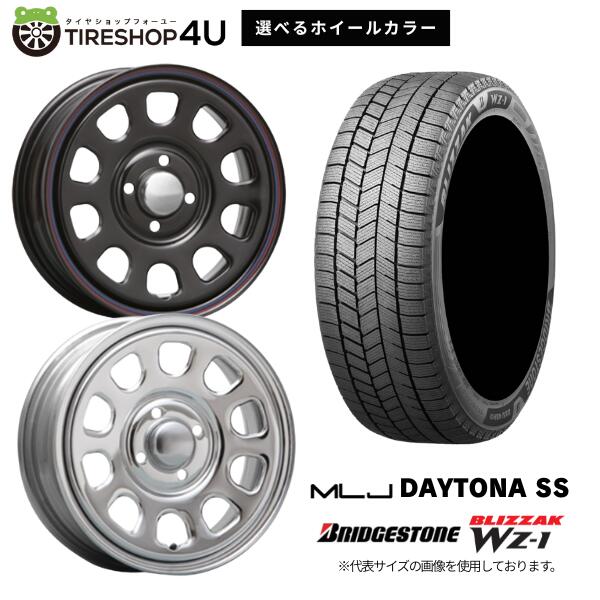 【最大P15倍】 MLJ DAYTONA SS 15×6.0J 4/100 30 BK BRIDGESTONE BLIZZAK WZ-1 195/65R15 91Q 2025年製 スタッドレスタイヤホイール 4本セット 15インチ 【プロボックス サクシード】