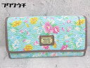 ◇ moamoa モアモア 花柄 L字ファスナー 長財布 ウォレット ライトブルー レディース 【中古】