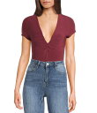 モアモア レディース トップス シャツ Vネック ギャザー ボディースーツ Moa Moa Short Sleeve V-Neck Ruched Bodysuit Red レッド