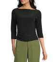 モアモア レディース トップス Tシャツ Moa Moa Boat Neck Quarter Sleeve Top Black ブラック