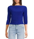 モアモア レディース トップス Tシャツ Moa Moa Boat Neck Quarter Sleeve Top Royal Blue ブルー