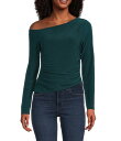 モアモア レディース トップス Tシャツ アシンメトリー Moa Moa Off The Shoulder Long Sleeve Asymmetrical Hem Top Hunter Green グリーン