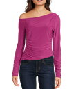 モアモア レディース トップス Tシャツ アシンメトリー Moa Moa Off The Shoulder Long Sleeve Asymmetrical Hem Top Magenta マゼンタ