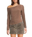モアモア レディース トップス Tシャツ アシンメトリー Moa Moa Off The Shoulder Long Sleeve Asymmetrical Hem Top Mocha モカ