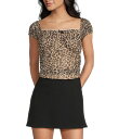 モアモア レディース トップス シャツ プリント Moa Moa Animal Printed Short Sleeve Square Neck Top Brown ブラウン