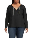 モアモア レディース トップス シャツ プラスサイズ クロップド レース Moa Moa Plus Size Long Sleeve Cropped Lace Up Top Black ブラック