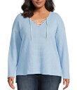 モアモア レディース トップス シャツ プラスサイズ クロップド レース Moa Moa Plus Size Long Sleeve Cropped Lace Up Top Blue ブルー