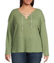モアモア レディース トップス シャツ プラスサイズ クロップド レース Moa Moa Plus Size Long Sleeve Cropped Lace Up Top Dusty Sage セージ
