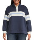モアモア レディース アウター ニット・セーター ハーフジップ プラスサイズ セーター Moa Moa Plus Size Striped Long Sleeve Quarter Zip Sweater Navy/Off-White/Periwinkle Blue オフホワイト