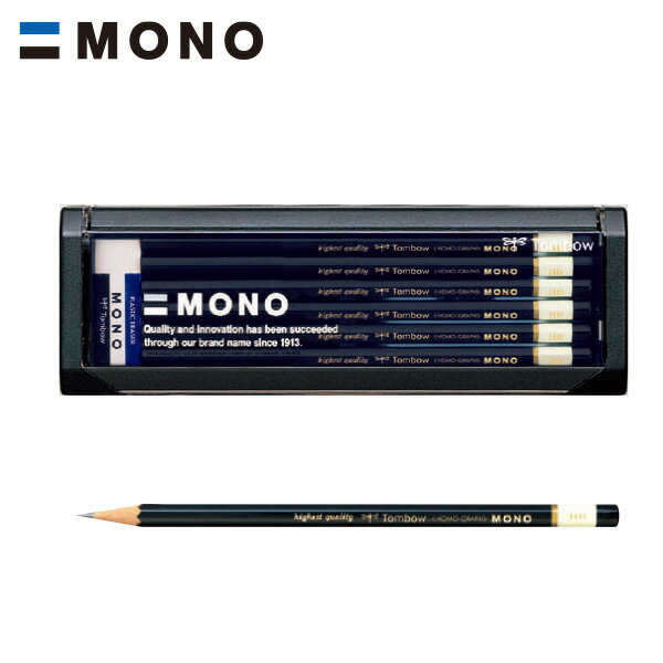トンボ鉛筆 MONO モノ 高級鉛筆 六角軸 H / 2H / 4H / F / HB / B / 2B / 4B / 5B / 6B 12本入り MONO 消しゴム付 プラケース付き