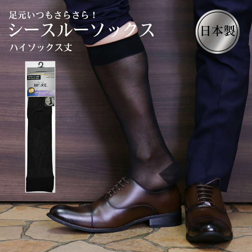 MORE 紳士 シースルーソックス ハイソックス シルスペリオールソックス 男性用ソックス ビジネスソックス メンズ プレゼント ギフト 国産 日本製 父の日 出張 旅行 立ち仕事 事務 吸水性 速乾性 透け