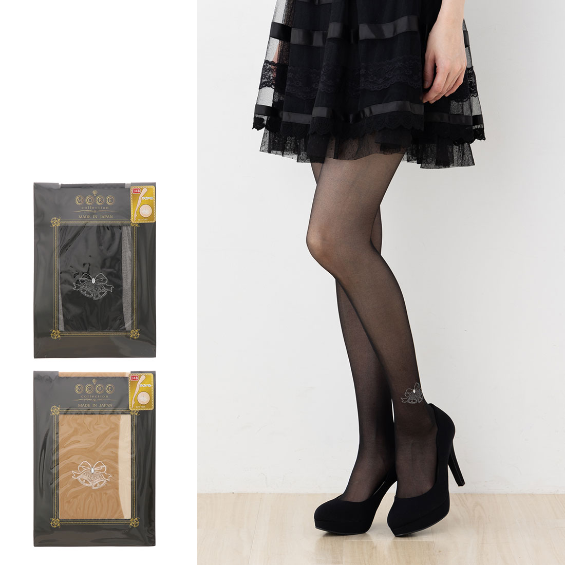 MORE ツインベル柄 ストッキング 左足首ワンポイント柄 M-L 黒 ベージュ レディース パンスト シアータイツ オーアイ工業 oai-51-7005