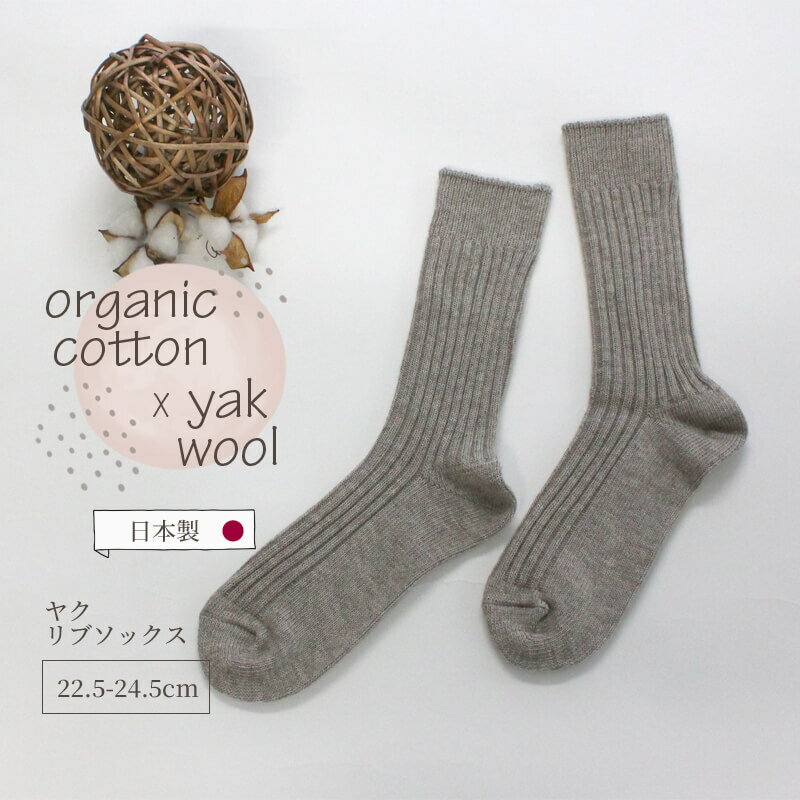 オーガニックコットン ヤク リブ編み レギュラーソックス 日本製 8-0042 8257 / ウール オーガニック コットン ソックス 靴下 グレー / 冷え取り 靴下 22cm〜24cm ORGANIC GARDEN オーガニックガーデン レディース