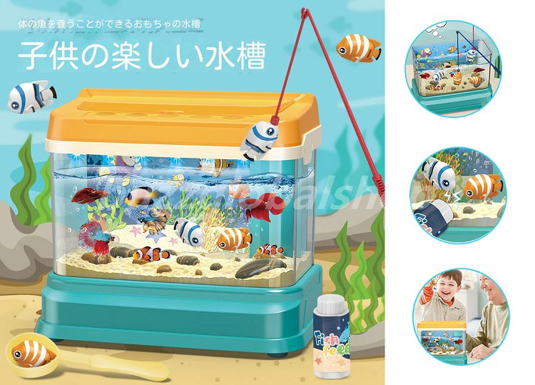 魚釣りゲーム ままごと遊び 釣りおもちゃ 水遊び 電動 音楽 ライト 金魚鉢 水族箱 水槽 透明 水循環システム機能 エサやり お風呂 玩具 室内遊び マグネット式 知育玩具 早期開発 子供 男の子 女の子 キッズ 知育おもちゃ 入園祝い プレゼント