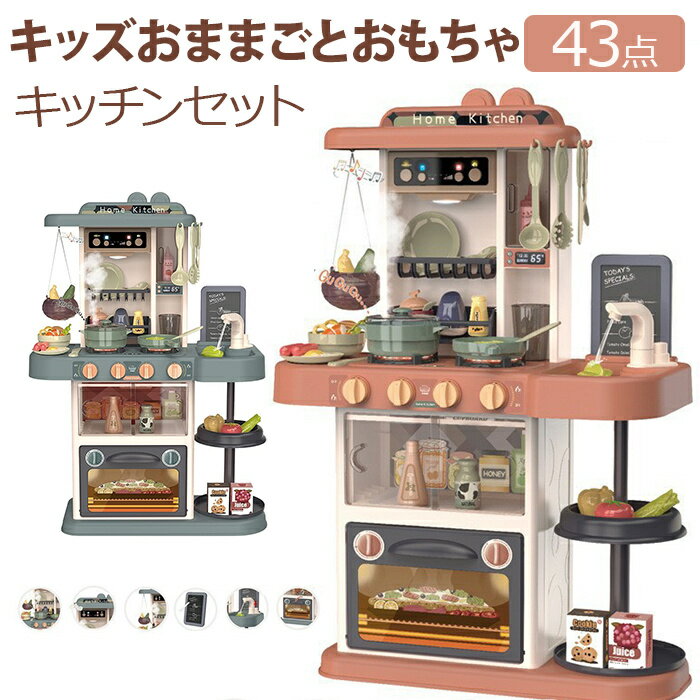 キッズおままごとおもちゃ ままごとセット キッチンセットおもちゃ リアル噴霧 リアル料理音 音楽ボックス 黒板付き 循環出水 食器/調味料/野菜 43点セット 室内 親子 水蒸気 ごっこ遊び スプレー 調理器具 台所 誕生日 プレゼント ギフト 組み立て式 男の子 女の子