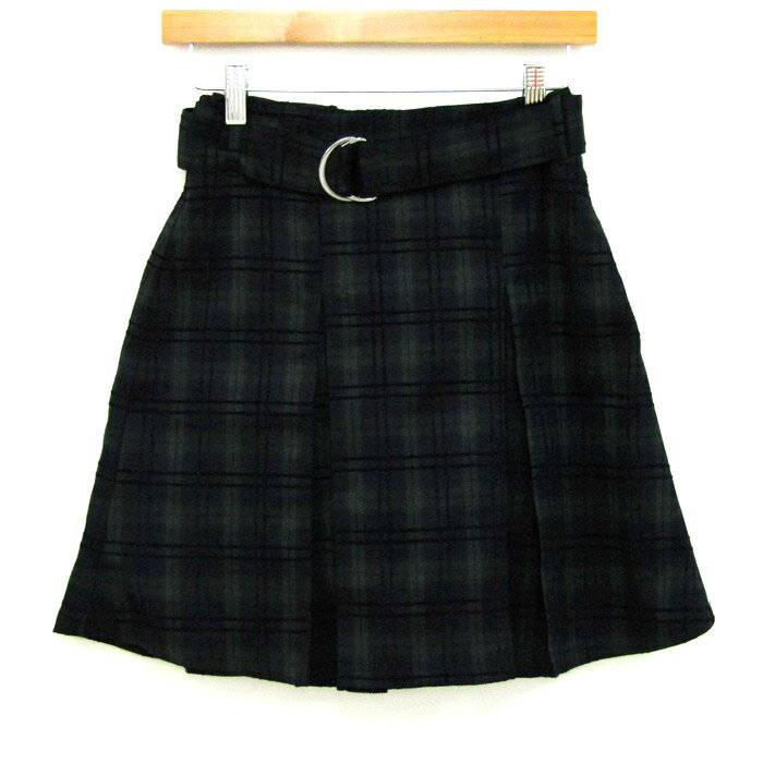 【全品39%OFFクーポン配布中】mystywoman ミスティウーマン ミニスカート ストレッチ ブランド ボトムス レディース Fサイズ ネイビー×グリーン 【中古】