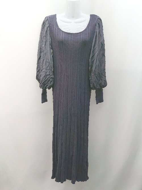 ◇ mystywoman ミスティウーマン ニット生地 大人 綺麗め ロング丈 ワンピース サイズF ネイビー レディース E 【中古】