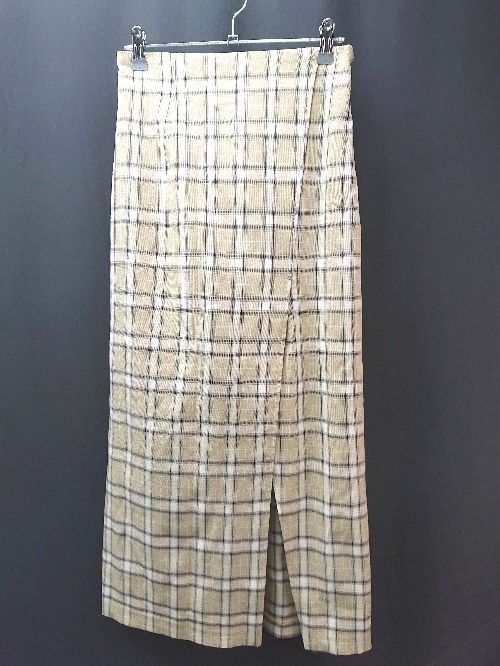 ◇ mystywoman ミスティウーマン チェック柄 デザインオシャレ ロング丈 フレア スカート サイズF ベージュ系 レディース E 【中古】