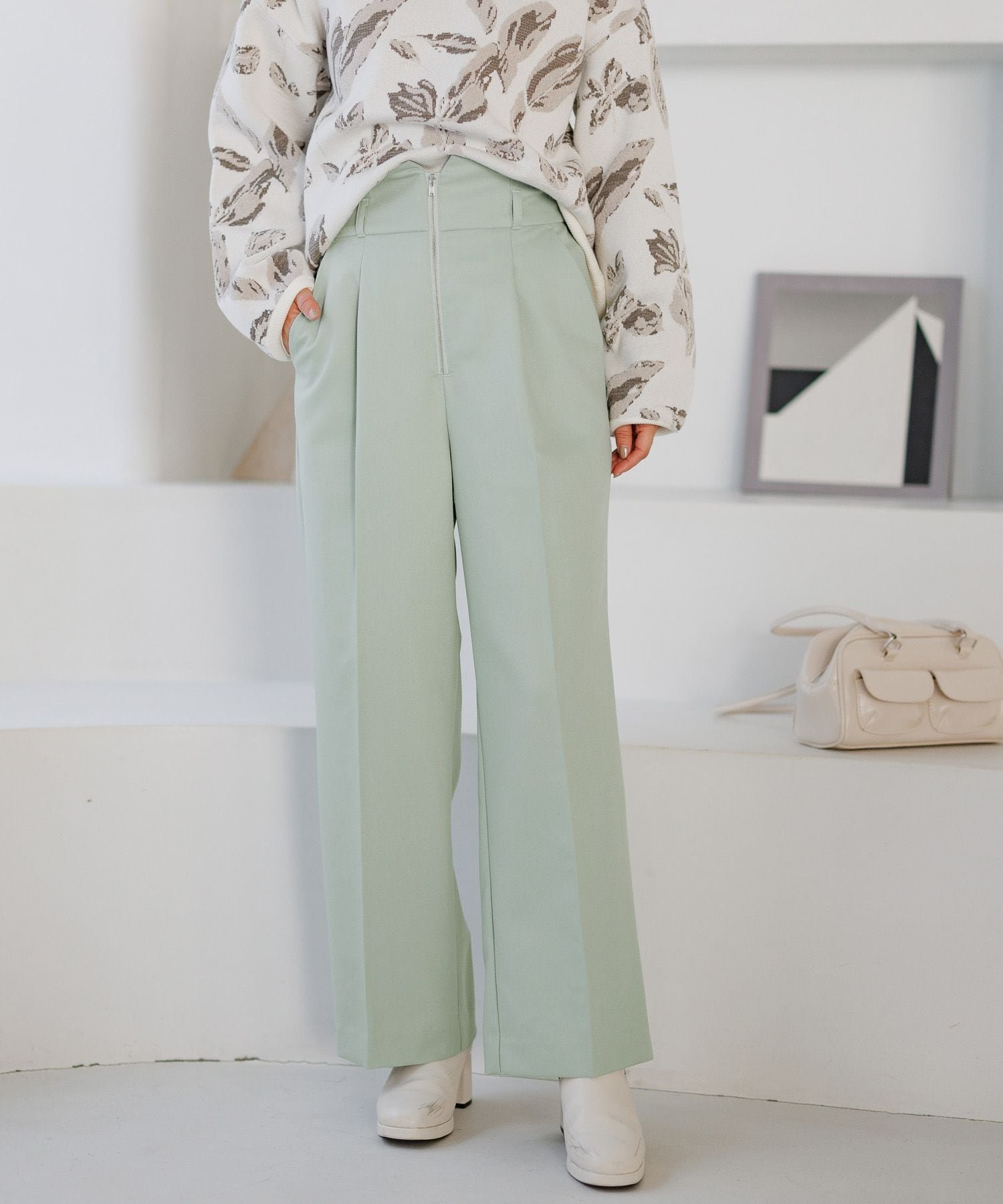 【SALE/60%OFF】mysty woman フロントZIPパンツ ミスティウーマン パンツ スラックス・ドレスパンツ ブラック グレー グリーン