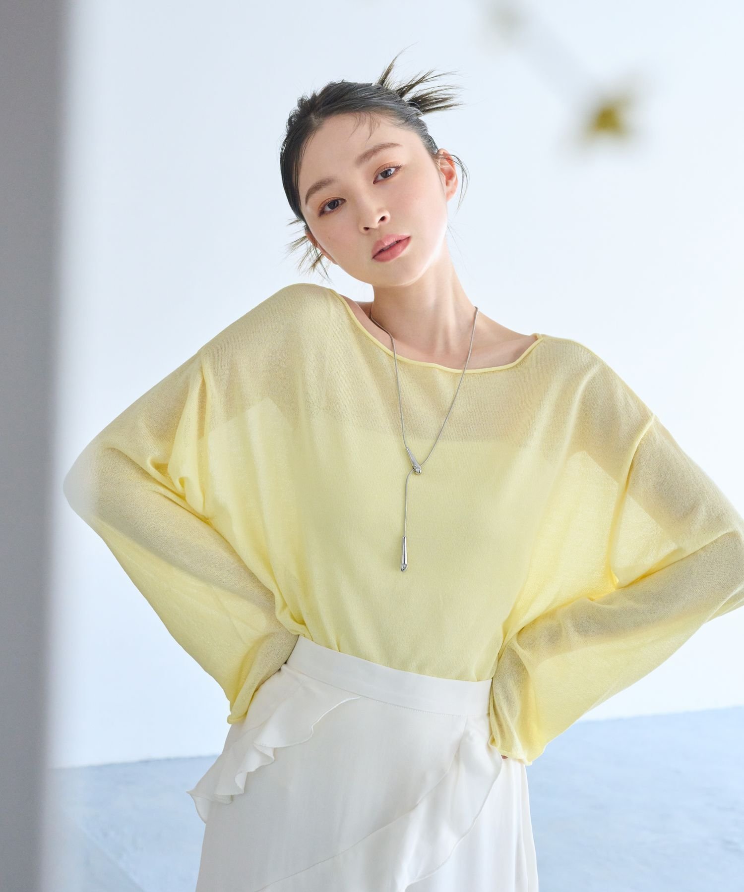 mysty woman(ミスティウーマン)【復刻/WEB限定】ソルベシアーニットーーー\WEB限定アイテム/ソルベカラーが可愛い♪程良い透け感が大人っぽく、着回し力抜群のシアーニットトップスです♪ーーー■point・薄手&ハイゲージで着まわし易く、1枚あると活躍間違い無し!・1枚着として、シャツのインナーとしてレイヤードしたり、ジャンスカとの相性も抜群・キャミソールやタンクトップなどインナー次第で表情が変わる!・シンプルかつ、袖のみワイドなお作りでとにかく重宝・長袖なので、インナー次第で長いシーズン活躍■stylingトレンドのシアーニットは春にマストな1枚♪フェミニンなスカート合わせで女性らしく、ジャンスカのInとしても最適。デニムやカラーパンツとのカジュアルなコーデもオススメです。型番:190297-62-09 KG3795【採寸】F(09)着丈55 肩幅56.5 胸囲111 袖丈49 天幅25.5商品のサイズについて【商品詳細】CHINA素材:レーヨン85% ナイロン15%サイズ:F手洗い可※画面上と実物では多少色具合が異なって見える場合もございます。ご了承ください。商品のカラーについてmysty woman(ミスティウーマン)【復刻/WEB限定】ソルベシアーニットーーー\WEB限定アイテム/ソルベカラーが可愛い♪程良い透け感が大人っぽく、着回し力抜群のシアーニットトップスです♪ーーー■point・薄手&ハイゲージで着まわし易く、1枚あると活躍間違い無し!・1枚着として、シャツのインナーとしてレイヤードしたり、ジャンスカとの相性も抜群・キャミソールやタンクトップなどインナー次第で表情が変わる!・シンプルかつ、袖のみワイドなお作りでとにかく重宝・長袖なので、インナー次第で長いシーズン活躍■stylingトレンドのシアーニットは春にマストな1枚♪フェミニンなスカート合わせで女性らしく、ジャンスカのInとしても最適。デニムやカラーパンツとのカジュアルなコーデもオススメです。型番:190297-62-09 KG3795【採寸】F(09)着丈55 肩幅56.5 胸囲111 袖丈49 天幅25.5商品のサイズについて【商品詳細】CHINA素材:レーヨン85% ナイロン15%サイズ:F手洗い可※画面上と実物では多少色具合が異なって見える場合もございます。ご了承ください。商品のカラーについて