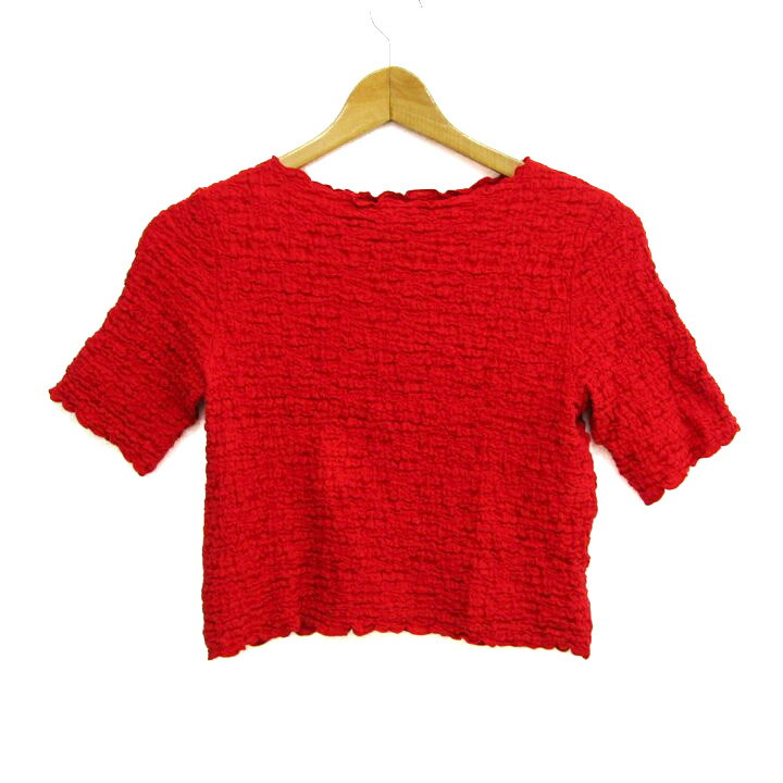 【全品39%OFFクーポン配布中】ミスティウーマン 半袖Tシャツ トップス シャーリング クロップドT レディース Fサイズ レッド mystywoman 【中古】