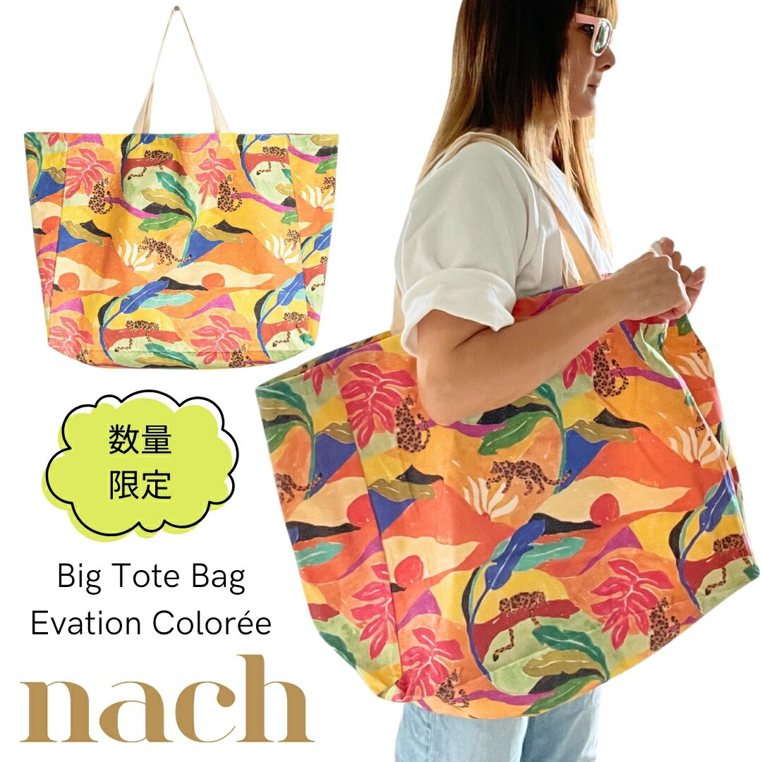 nach ナッシュ 超大型 トートバッグ 「ヒョウのカラフル・エヴァージョン」 コットン キャンバス地 フランス ミニチュア・アニマルジュエリー