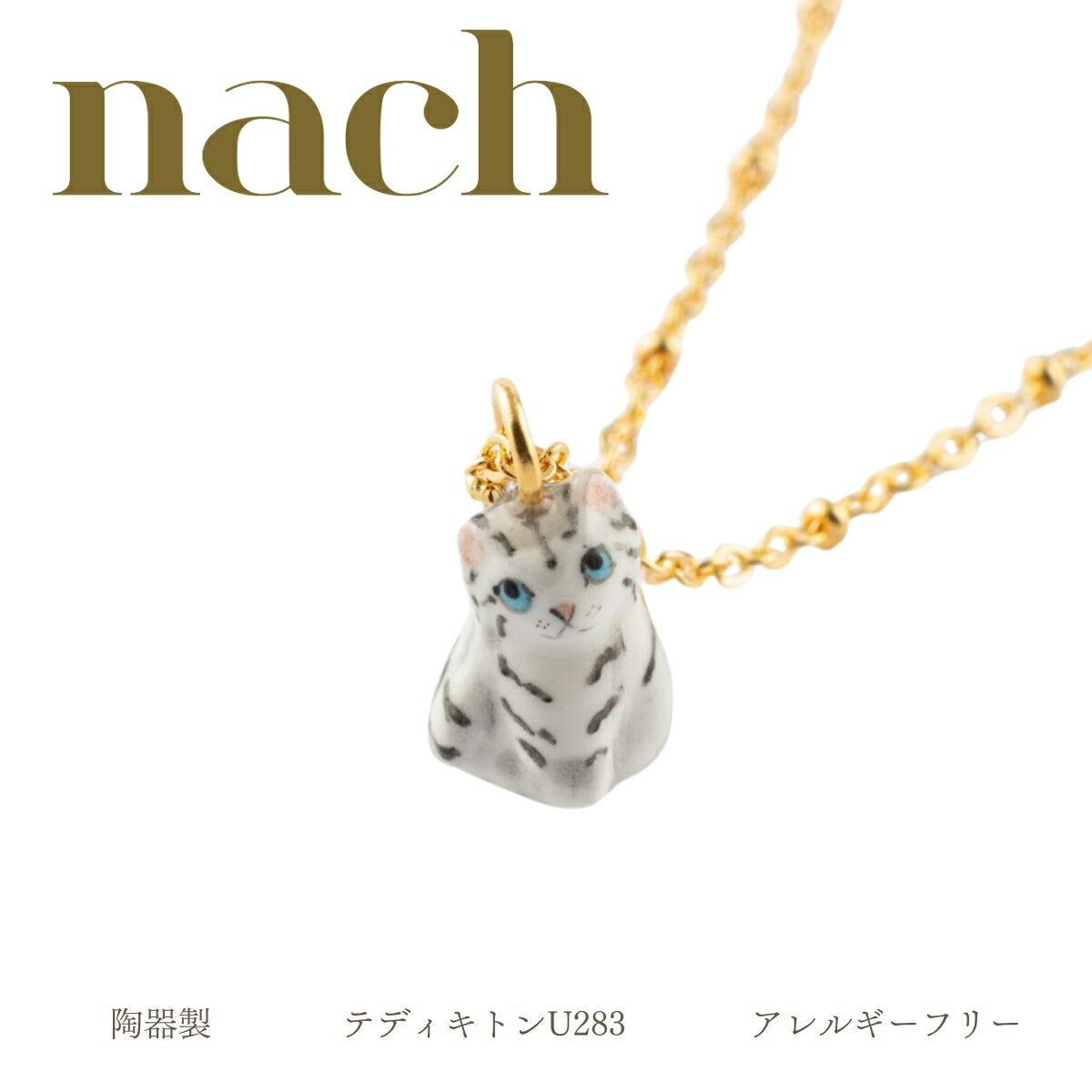 nach ナッシュ 【テディキトン】ペンダント ネックレス ミニチュア 24金メッキ 真鍮 陶器 アニマル ネックレス 猫 キャット ギフト プレゼント かわいい おしゃれ 女性 彼女 プレゼント 誕生日 クリスマス 磁器 金