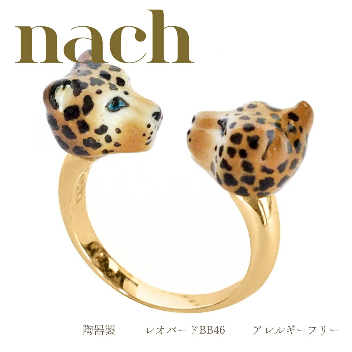 nach ナッシュ【レオパード bb46】指輪 リング サイズフリー 男女兼用 ミニチュア 24金メッキ 真鍮 陶器 アニマル 花 ギフト プレゼント かわいい おしゃれ 女性 彼女 プレゼント 誕生日 クリスマス 磁器 金 アジャスタブル