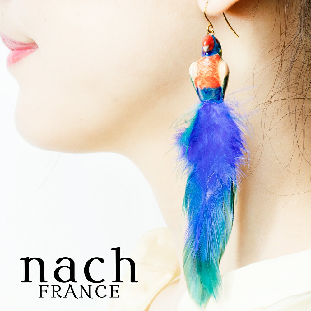 【両耳用 2個セット】nach オウム 羽 ピアス レディース おしゃれ フランス ブランド フック 小物 アクセサリー かわいい アニマル ギフト 誕生日 プレゼント 女性 誕生日 贈り物 送料無料 ナッシュ