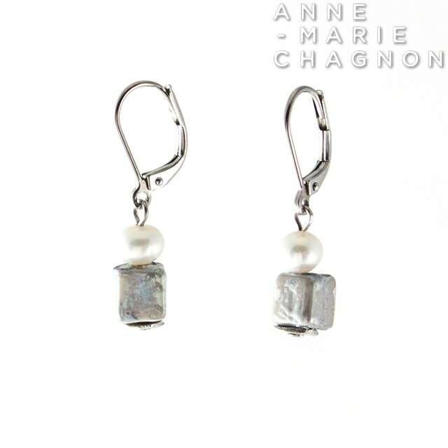 【人気デザイン】 アンマリーシャニョン シンプル デザイン ピアス シルバー スクエア ガラス & 淡水 パール イヤリングに変更できる 金属アレルギーを起こしにくい素材でお肌にやさしい ブランド レディース アクセサリー メタリック インポート PoOrigin 18 コレクション