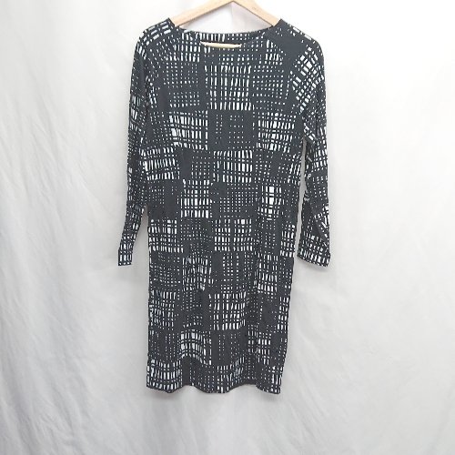 ◇ ⊂ nanso ナンソー 白黒柄 長袖 ロング ワンピース サイズXS ブラック系 レディース E 【中古】