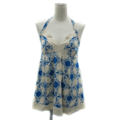 【中古】ナンソ nanso LEMPI VAATE カットソー ノースリーブ ホルターネック 総柄 リボン XS ライトベージュ 青 ブルー /YS5 レディース 【ベクトル 古着】 250930