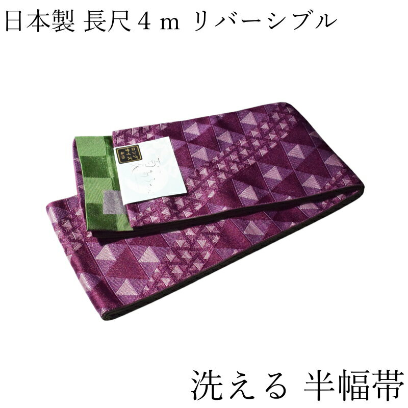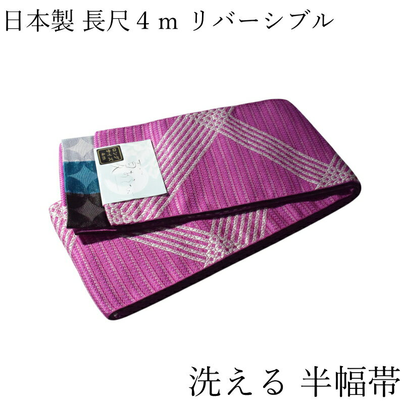 夏あそび 半幅帯 No.31 リバーシブル 小袋帯 日本製 長尺 約4m ポリエステル100% 両面仕様 細帯 夏用 浴衣 着物 半巾帯 メール便OK