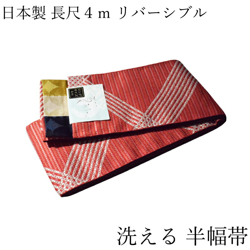 夏あそび 半幅帯 No.17 リバーシブル 小袋帯 日本製 長尺 約4m ポリエステル100% 両面仕様 細帯 夏用 浴衣 着物 半巾帯 メール便OK