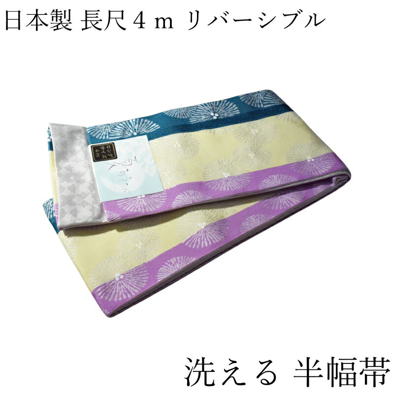 夏あそび 半幅帯 No.15 リバーシブル 小袋帯 日本製 長尺 約4m ポリエステル100% 両面仕様 細帯 夏用 浴衣 着物 半巾帯 メール便OK