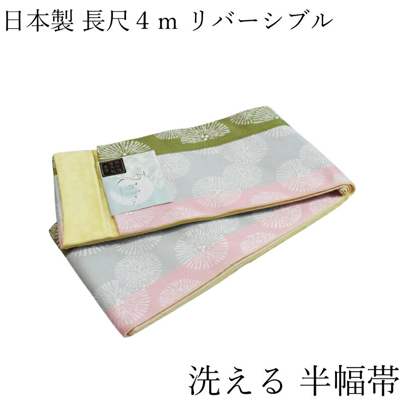 夏あそび 半幅帯 No.4 リバーシブル 小袋帯 日本製 長尺 約4m ポリエステル100% 両面仕様 細帯 夏用 浴衣 着物 半巾帯 メール便OK