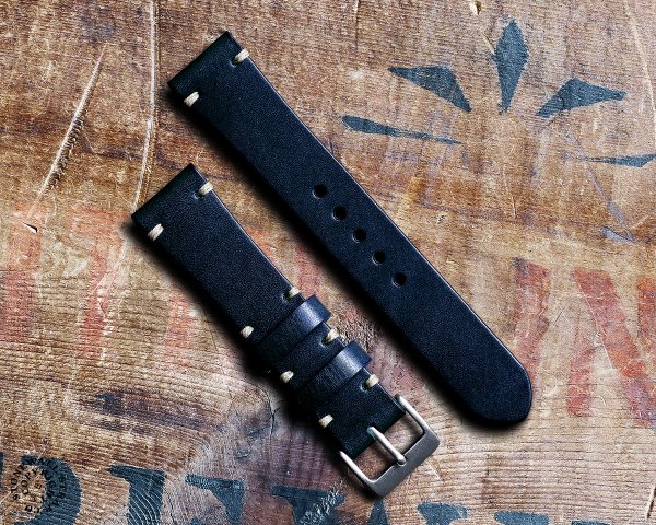 STONEWALL ヘリテージ ストラップ LH ネイビー x ナチュラル カテゴリ : クロノグラフ ダイバーズウォッチ パイロットウォッチ ベルト NATOベルト ミリタリー 軍用 アンティーク ビンテージ レザー 革 紺 対応 : 16mm 17mm 18mm 19mm 20mm 21mm 22mm 23mm 24mm