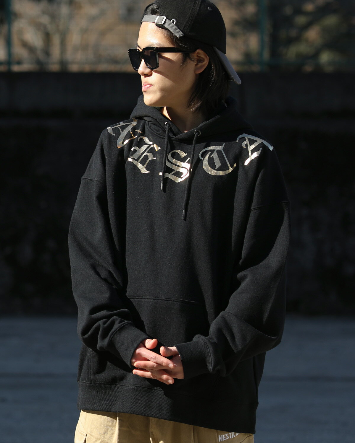 NESTA BRAND (ネスタブランド) ゴールド箔 ブラック パーカー メンズ レディース 大きいサイズ 長袖 スウェット レゲエ ストリート スケーター ファッション スケボー