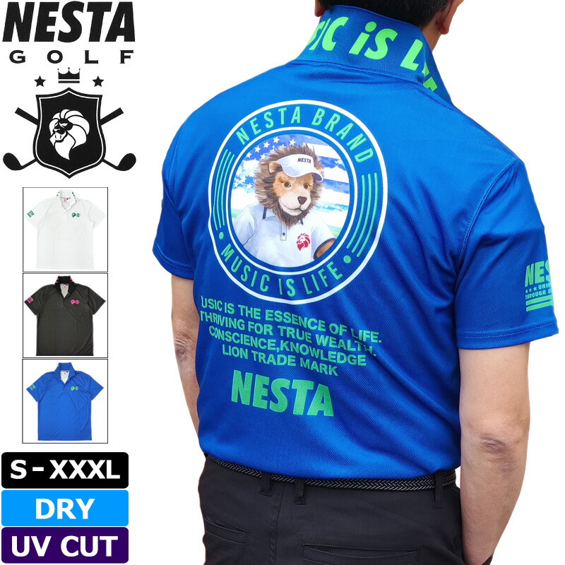 ネスタブランド 半袖 ポロシャツ サークルライオン 吸汗速乾 UVカット 232BB1202 メール便発送【新品】SAAR NESTA BRAND ポロ トップス ファッション ネスタゴルフ 半そで メンズ レディース