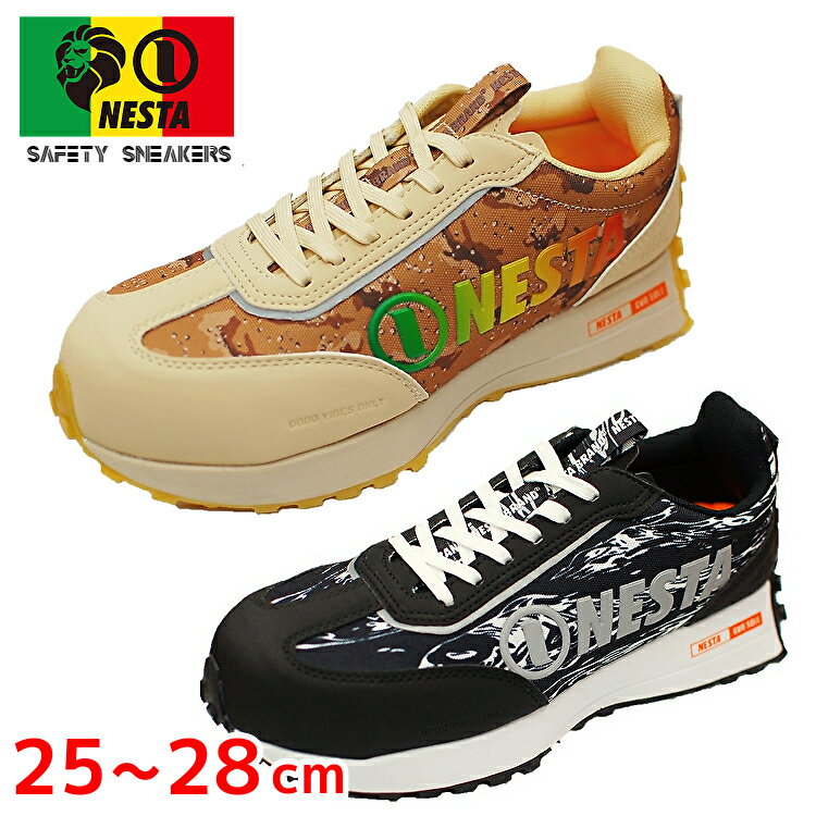 スニーカー NESTA ネスタ 安全靴 送料無料 通気性 NES-07 カモフラ 厚底 軽量 セーフティーシューズ おしゃれ かっこいい