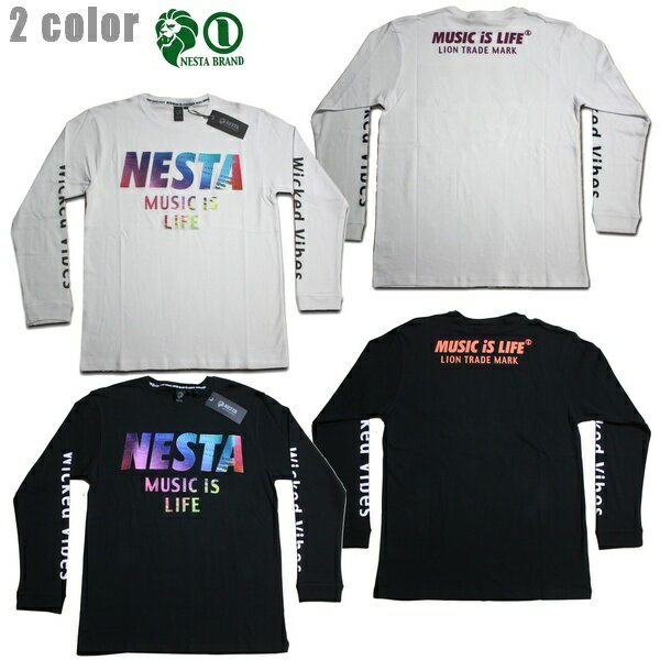 NESTA 長袖Tシャツ レインボースムースロンT 203NB1109 ホワイト ブラック 【 2021 ネスタ 長袖Tシャツ / メンズ ロンT / レゲエ / B系 / スケーター / ネスタブランド / NESTABRAND / メール便可 / あす楽 】