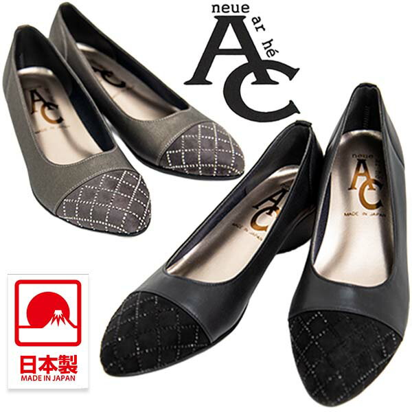 日本製 AC neue ar he 7743 オールシーズン 幅広3E 黒 レディースシューズ レディース 冠婚葬祭 おしゃれ お洒落 可愛い かわいい 結婚式 歩きやすい 疲れにくい 痛くない ブラック ブラウン グレー キレイ スマート 美脚 パンプス