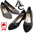 neue ar he' AC エーシー 3428 レディース パンプス 日本製 つま先ビジュー キラキラ ウェッジソール クッション性 屈曲性 安定感 エレガンス 上品 疲れにくい MADE IN JAPAN クロ グレー /SB/MR