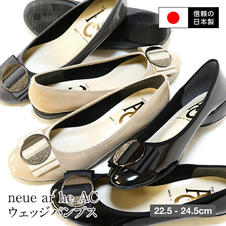 3E 幅広 ワイド ロンサム レディース neue ar he AC パンプス レディース 靴 シューズ 通勤 セレモニー ウエッジソール 低反発 歩きやすい 日本製 ブラック 黒 送料無料 3782