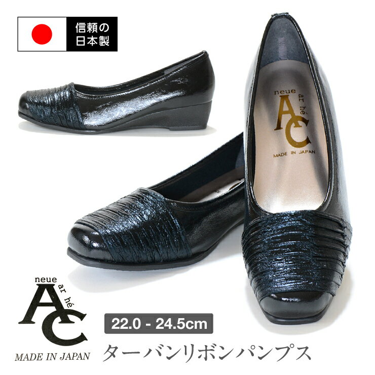 【送料無料】【日本製】neue ar he AC ターバンリボンパンプス 日本製 3E ローヒール ウェッジソール 美脚 雨の日 幅広 キレイ系 エレガント オフィス 通勤 マタニティ 入学 入園 参観日 冠婚葬祭 きれいめ 外反母趾 Ark-Shoes アークシューズ mh-1450 [lowheel]